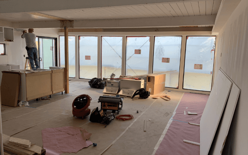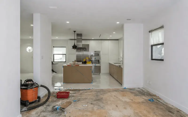 Full interior renovation including kitchen remodel, bathroom upgrades, new flooring, and a redesigned open living layout.